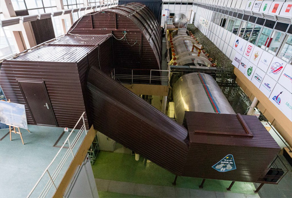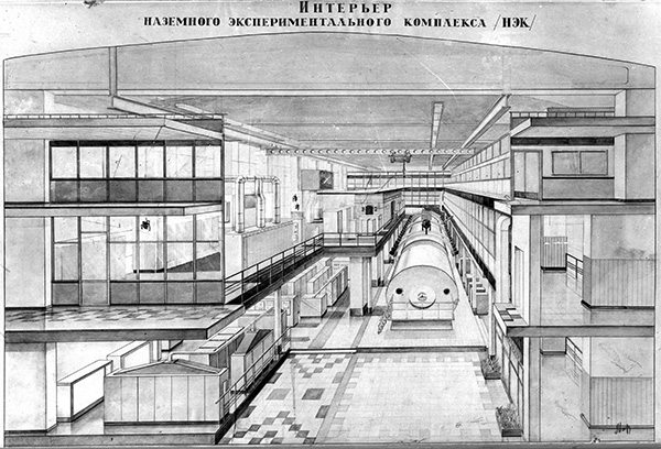 МЕДИКО-ТЕХНИЧЕСКИЙ НАЗЕМНЫЙ ЭКСПЕРИМЕНТАЛЬНЫЙ КОМПЛЕКС (НЭК) ИМБП РАНПри создании ИМБП Генеральный конструктор ракетно-космической техники С.П. Королев и Президент Академии Наук М.В. Келдыш прежде всего предусматривали приоритетное решение медико-биологических проблем, критически значимых для осуществления длительных межпланетных полетов. Учитывая необходимость проведения экспериментальных исследований по данной проблеме, в 1971 году в ИМБП введен в эксплуатацию уникальный многофункциональный медико-технический наземный экспериментальный комплекс (НЭК), моделирующего разнообразные условия среды обитания для перспективных тяжелых межпланетных кораблей (ТМК). Надо сказать, что в заметках С.П. Королева, относящихся к 1962 году, между аббревиатурами ТМК (тяжелый межпланетный корабль) и ТОС (тяжелая орбитальная станция) был проставлен знак равенства, и соответственно эксперименты в НЭКе планировались как подготовка не только марсианских, но и орбитальных экспедиций. Технических требований к наземному макету ТМК (изделию ЭУ-37 или НЭК), были сформулированы сотрудниками ОКБ-1: Владимиром Корсаковым - впоследствии он был назначен ведущим конструктором по макету ТМК от ОКБ-1 (с 1966г - ЦКБЭМ, в настоящее время РКК «Энергия» им. С.П. Королева), обеспечивал изготовление и монтаж элементов комплекса, являлся командиром первого изоляционного эксперимента; инженерами-конструкторами Николаем Протасовым, Владимиром Бугровым и др. Проектирование комплекса началось в 1964 году, монтаж осуществлялся в 1967–1970 годах (работы велись в том числе и на беспрецедентном для того времени программном комплексе для расчета глобальных сетевых моделей, разработанном в Лаборатории систем управления разработками Побиска Кузнецова). В создании комплекса принимали участие: Институт медико-биологических проблем (ИМБП), Ракетно-космическая корпорация «Энергия» им. С.П. Королева, Научно-исследовательский и конструкторский институт химического машиностроения (НИИХИММАШ), Научно-производственное предприятие «Звезда» им. Г.И. Северина, Летно-испытательный институт им. М.М. Громова. Из воспоминаний сотрудника ИМБП В. Макарова: «Вхожу в громадный зал, чуть ли не в половину футбольного поля. Гулкие звуки, огоньки электросварки под потолком. Застекленные балконы в три яруса вдоль стен, нависшие с четырех сторон над площадкой зала, как над ареной. Вдоль зала, заполняя его пространство, протянулось длиннющее тело, составленное из цилиндров разных диаметров – корпус ТМК. Корабль окутан шлангами, кабелями. Окружен трапами, подмостками. Испещрен люками и иллюминаторами. Сверху по всей длине корпуса над кораблем навешен ряд контейнеров замысловатой формы со знаком «Радиация». Вдали, у торцевой стены, в неосвещенном конце зала, просматривается еще одно цилиндрическое тело, соединенное с первым под прямым углом...» В настояшее время наземный экспериментальный комплекс предназначен для моделирования длительных космических полетов, в том числе на Луну и Марс, включает: Дополнительно в 2008 году в комплекс введен модуль-имитатор поверхности условной планеты. Управление экспериментом и системами медико-технического комплекса, а также наблюдение и контроль за экипажем и модулями осуществляется с наземного пункта (НП) управления экспериментом. Все модули выполнены функ